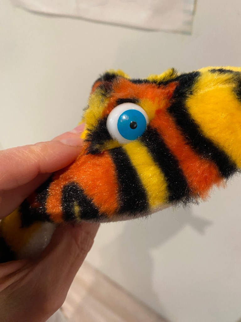 Meillä esimerkiksi tämän käärmeen silmän ympärys repsotti auki niin, että sormi upposi reikään. Sen kun ompeli varovasti kiinni, se näytti melkein paremmalta, kuin aiemmin huolimattomasti ommeltu pehmo.